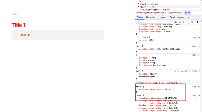 For example, --color-text-primary seems to be the color variable for the darkest black text, so we can write it this way in the custom.css file: