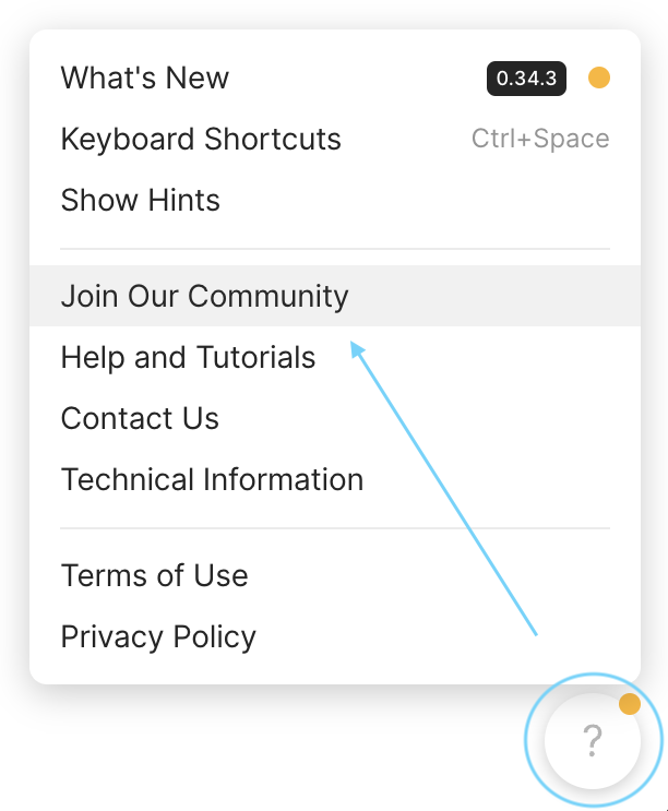 En la aplicación de escritorio, haz clic en el botón **?** (Ayuda) de la esquina inferior derecha y luego en «[Únete a nuestra comunidad](https://community.anytype.io/invites/sig5xTU4ZZ)».