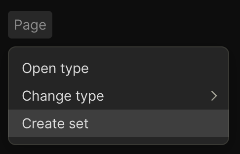 Затем вам нужно будет выбрать, хотите ли вы создать Набор по Типу, который позволит вам перечислить все ваши Объекты определенного Типа, или Набор по Связи, который перечислит все Объекты, содержащие выбранную вами Связь.